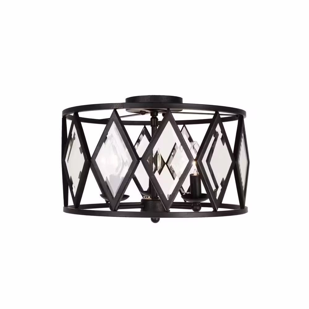 Home Decorators Collection Tessali 16 in. 3-Light Bronze Prismatic Glass Flush Mount Ceiling Light