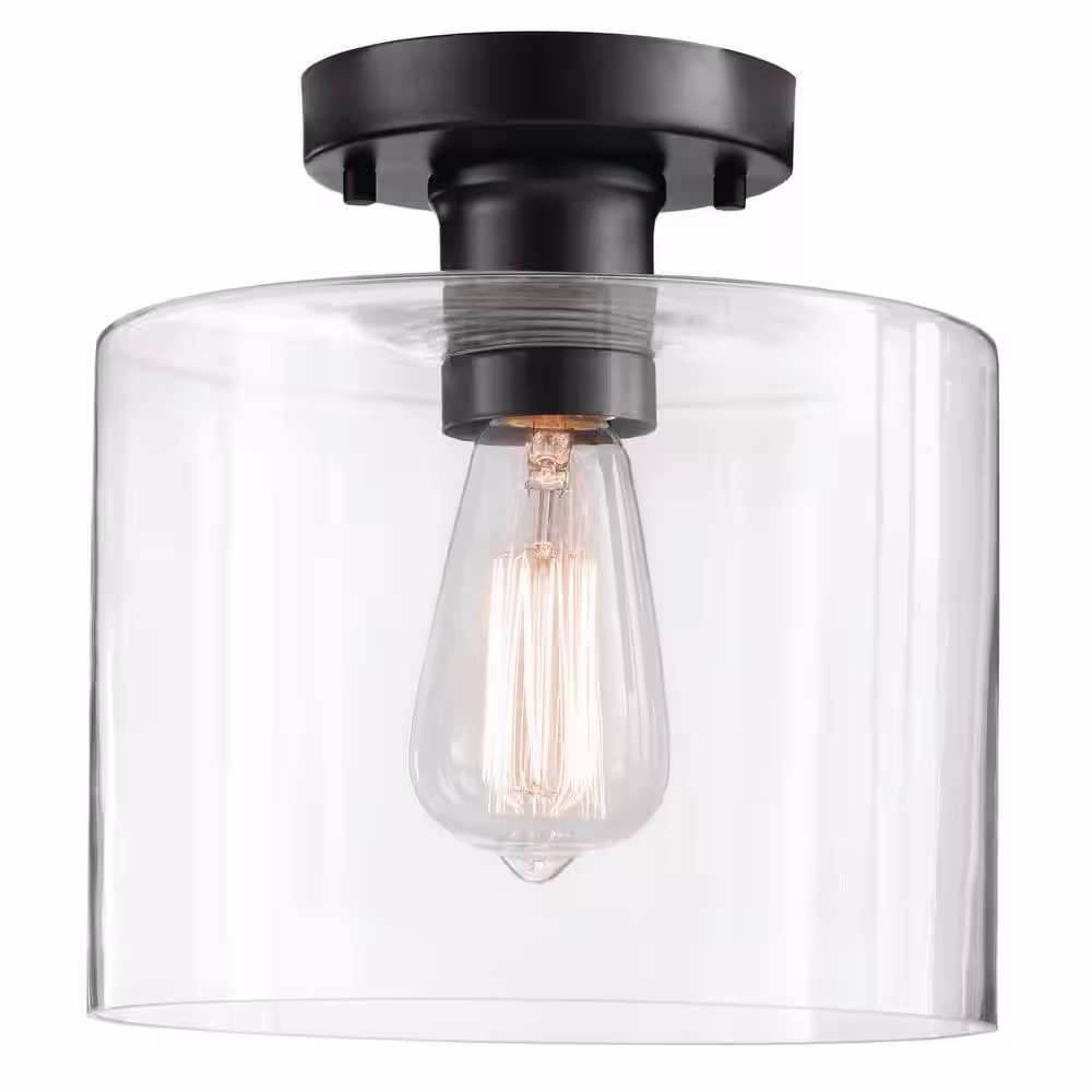 Hampton Bay Belvedere Park 10.625 in. 1-Light Espresso Bronze Schoolhouse Round Semi Flush Mount, Farmhouse Ceiling Light