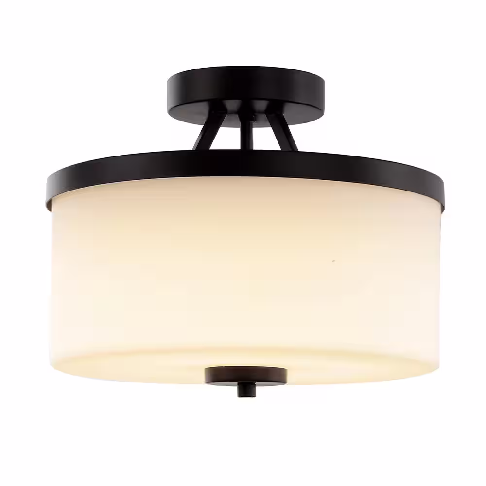 SMRTLite by NBG HOME 12 in. Espresso Integrated LED Semi-Flush Mount with Frosted Shade