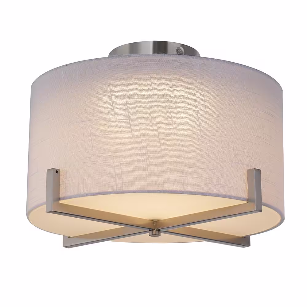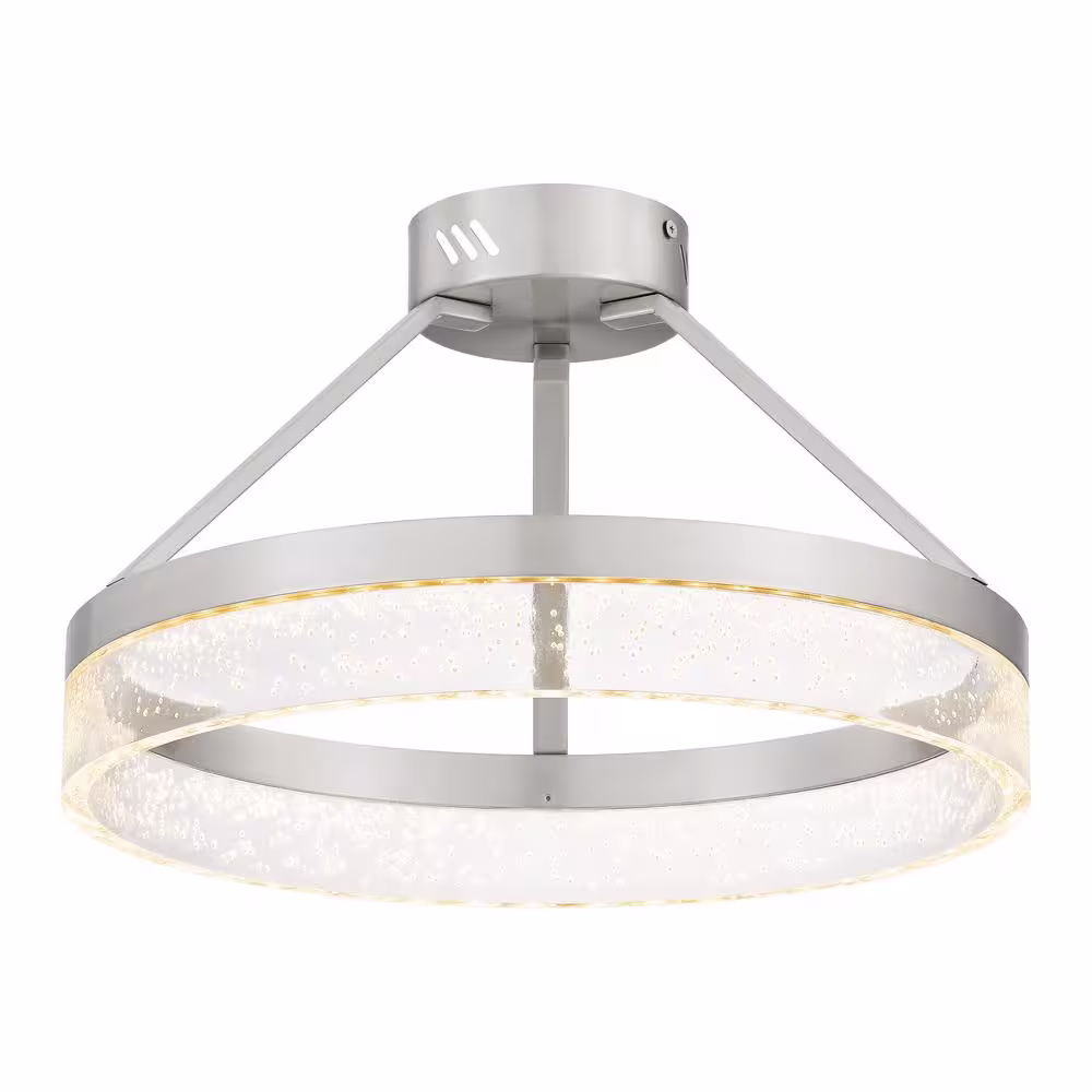 SMRTLite by NBG HOME 15.75 in. Brushed Nickel Integrated LED Semi-Flush Mount with Bubble Shade