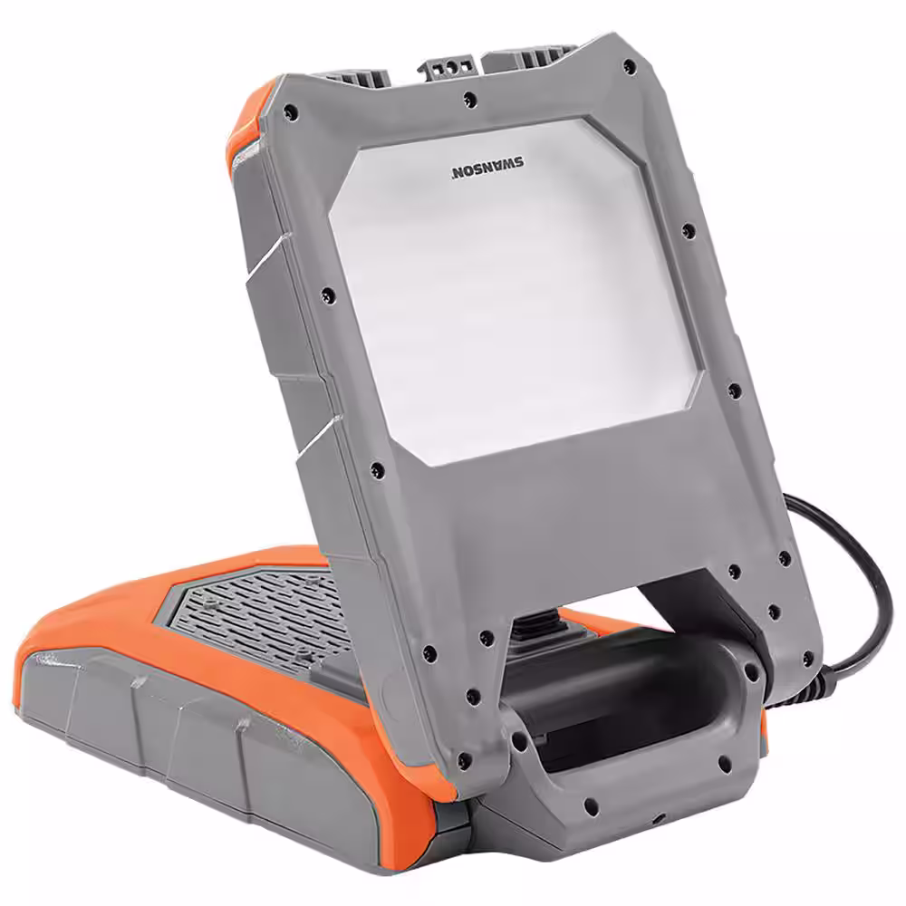 Swanson 9000 Lumens, Corded Foldable LED Standing Work Light with Bluetooth Speaker & 110-Volt Power Outlet
