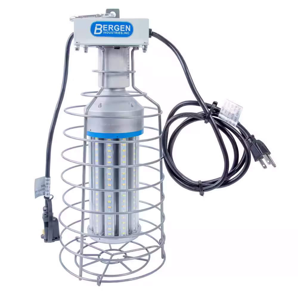 Bergen Industries 60-Watt High Bay LED Luminaire Temporary Plug-In Work Light Fixture 7500LM, 5000K Snap Lock Hook and Wire Guard
