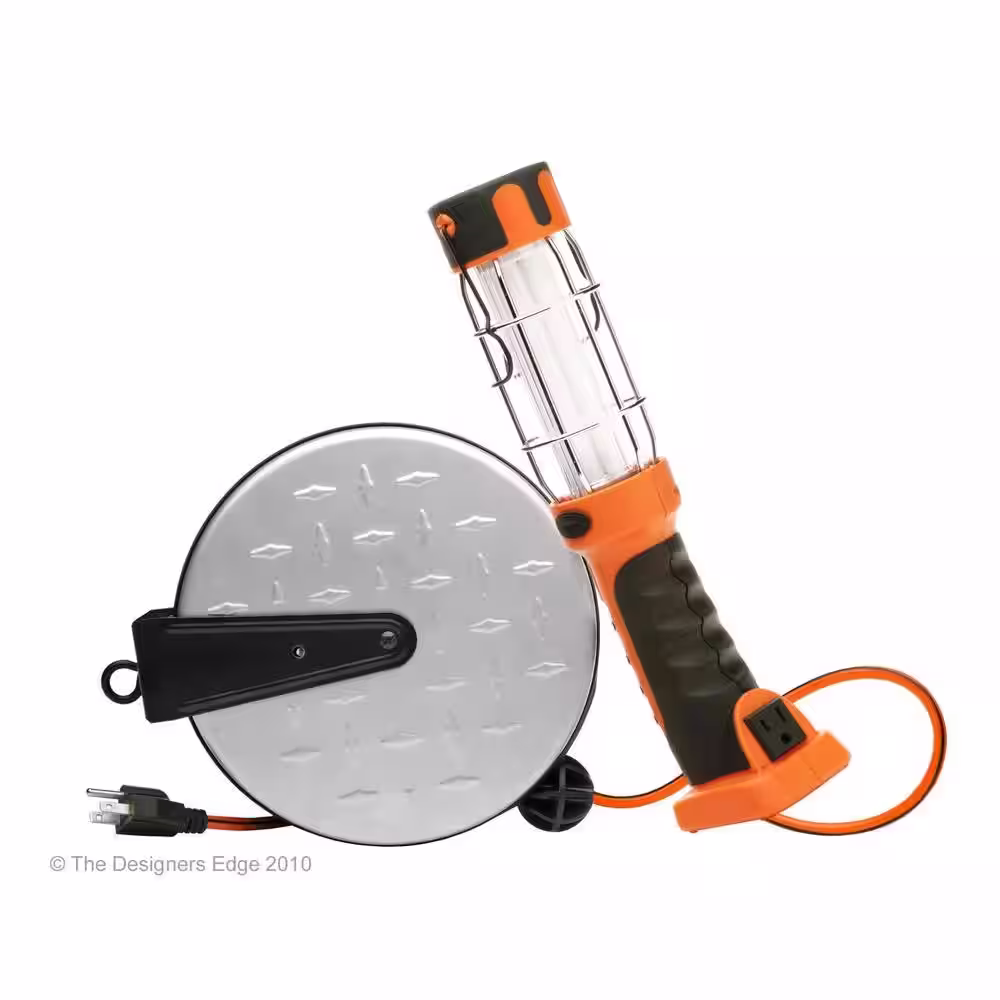 Designers Edge 60-Watt 20 ft. 16/3 Incandescent Heavy-Duty Guarded Trouble Work Light with Plastic Retractable Cord Reel