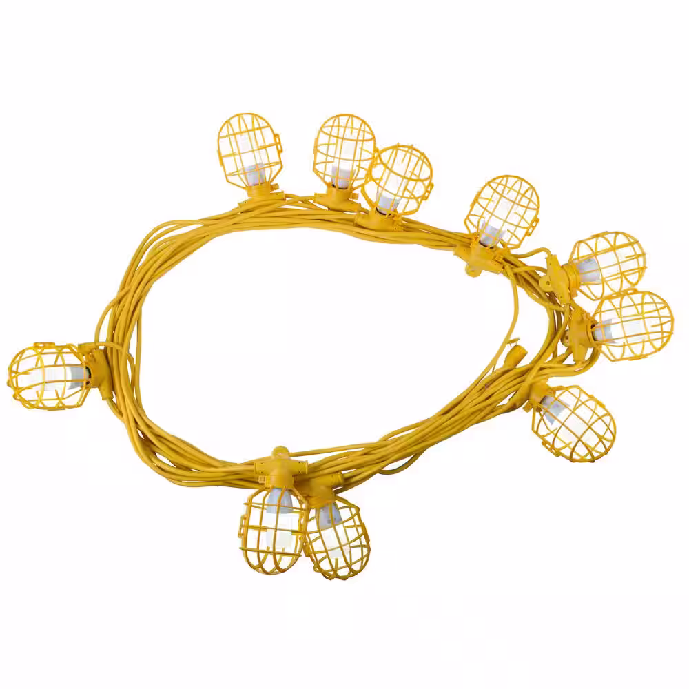Bergen Industries 100 ft. 12/3 SJTW 10-Light Plastic Cage Temporary Light Stringer, Yellow