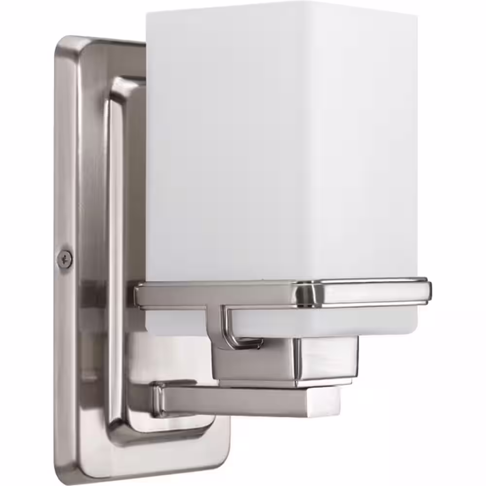 Progress Lighting Metric Collection 1-Light Brushed Nickel Etched/Painted White Inside Glass Coastal Bath Vanity Light