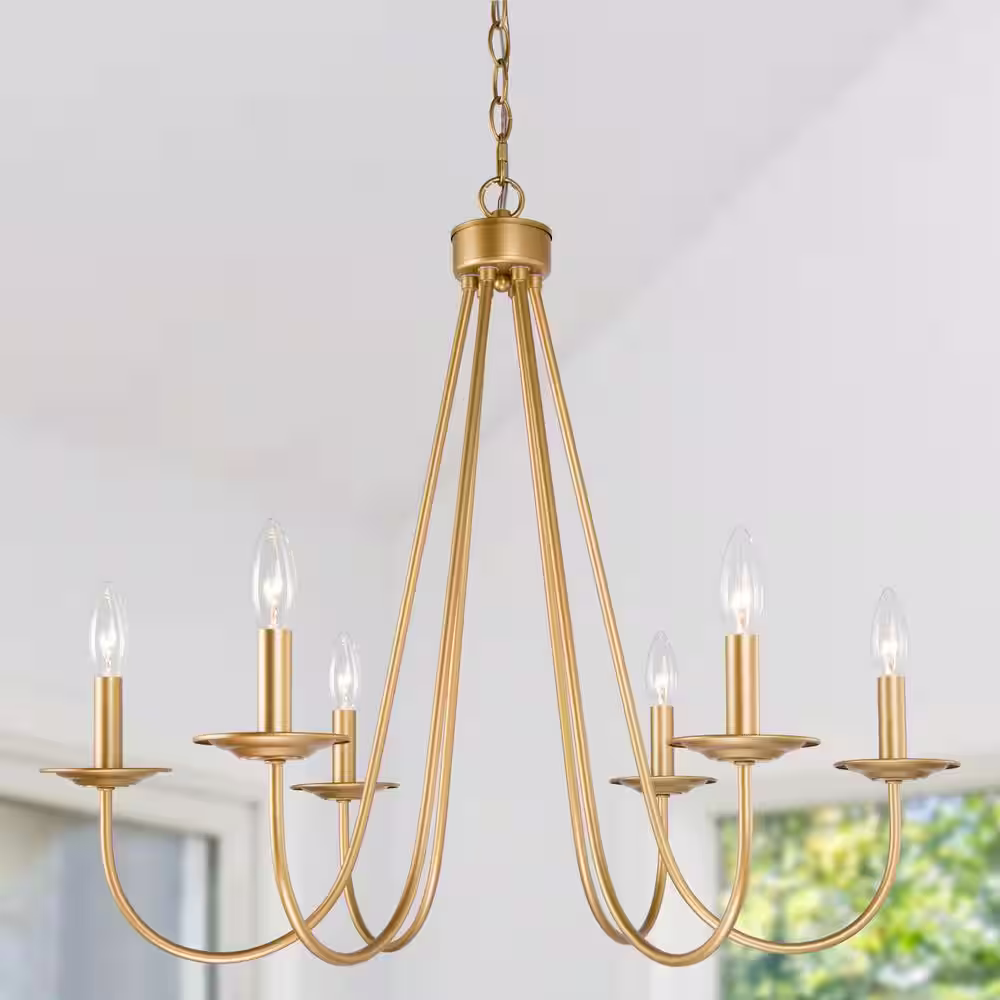 Uolfin Mid-Century Candlestick Dining Room Chandelier 28 in. 6-Light Brass Gold Modern Chandelier for Living Room