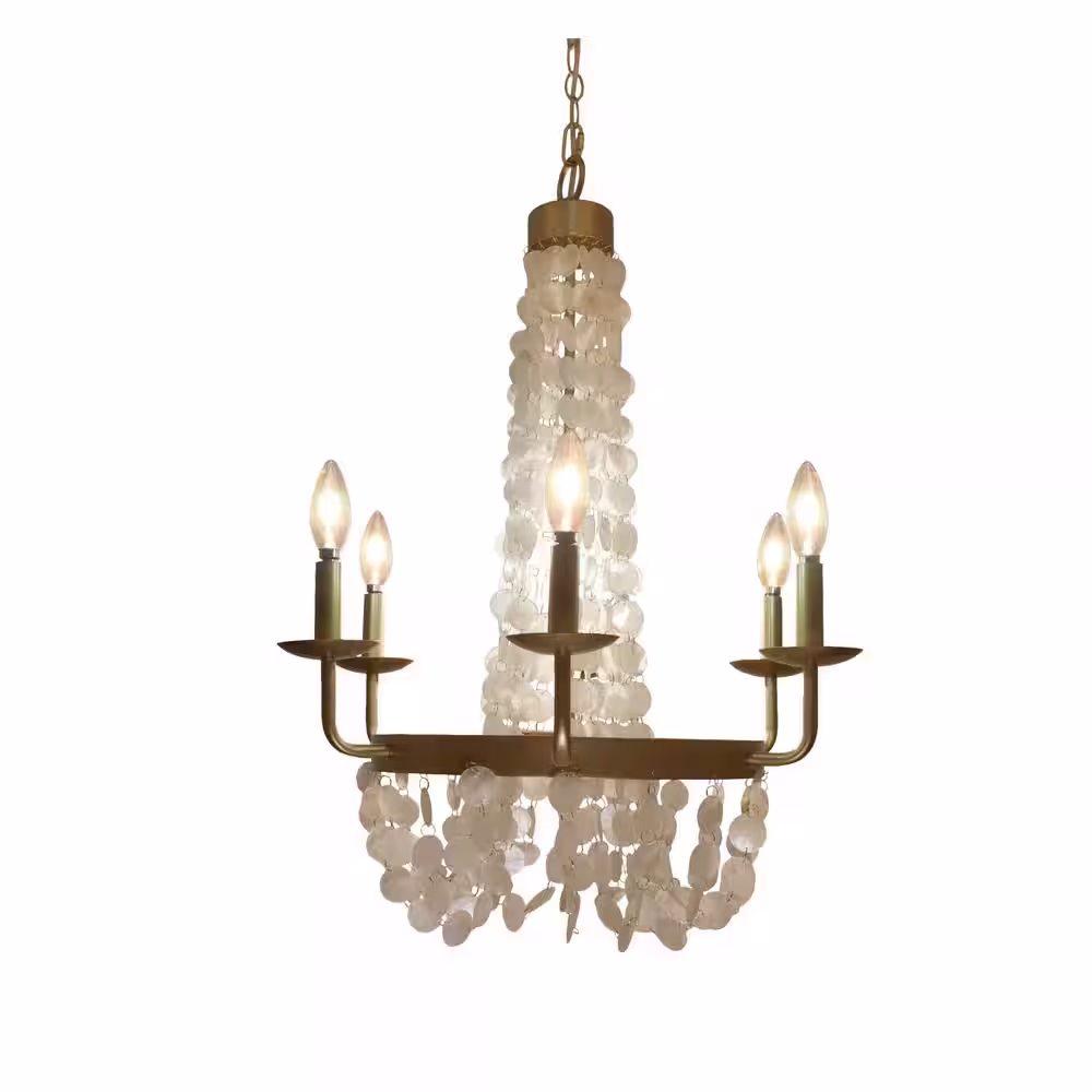 River of Goods 6-Light Brushed Gold Chandelier with Capiz Shells