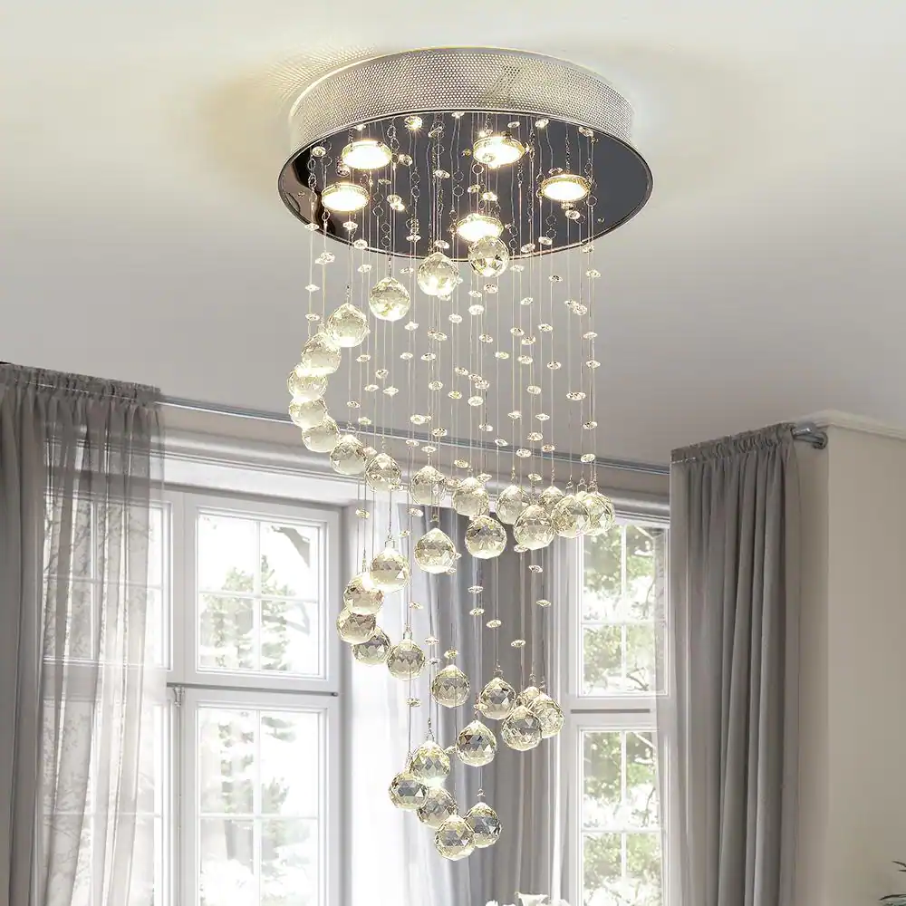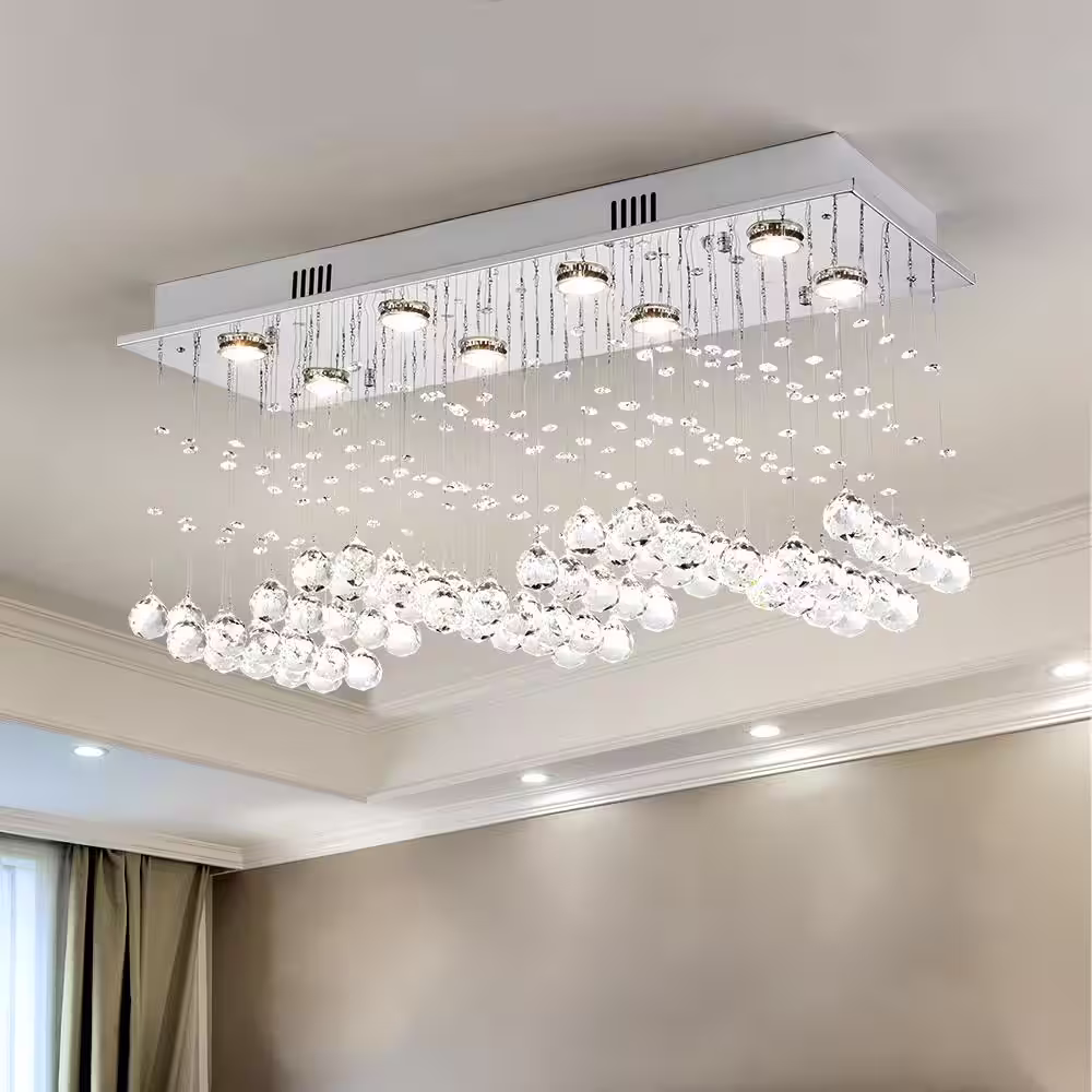 Maxax Albany 8-Light Clear/Chrome Unique Tiered Chandelier with Crystal Accents