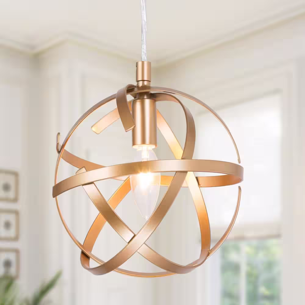 Uolfin Modern Brass Gold Globe Pendant Light, Mini 1-light Cage Island Chandelier Pendant Light