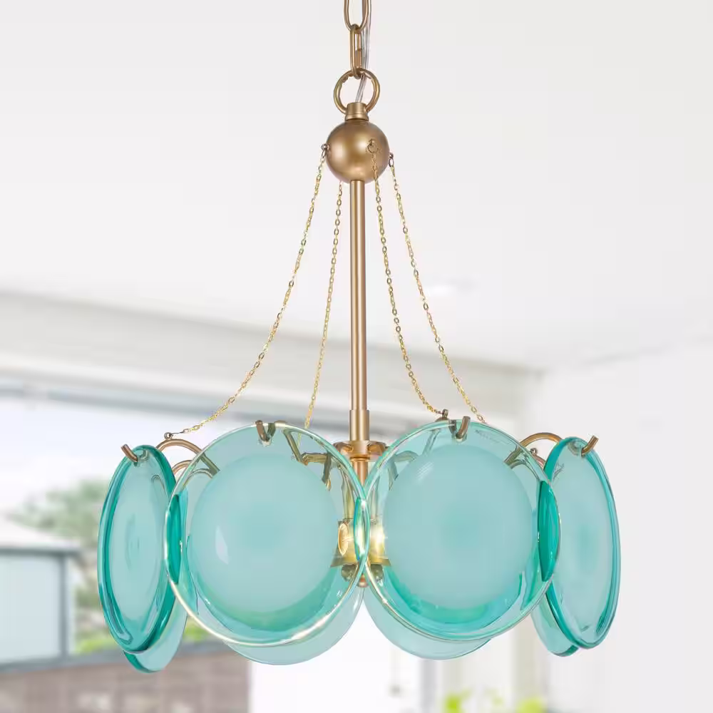 Uolfin Modern Farmhouse Drum Island Chandelier Light, 3-Light Blue amd Gold Coastal Luxury Chandelier Pendant Light