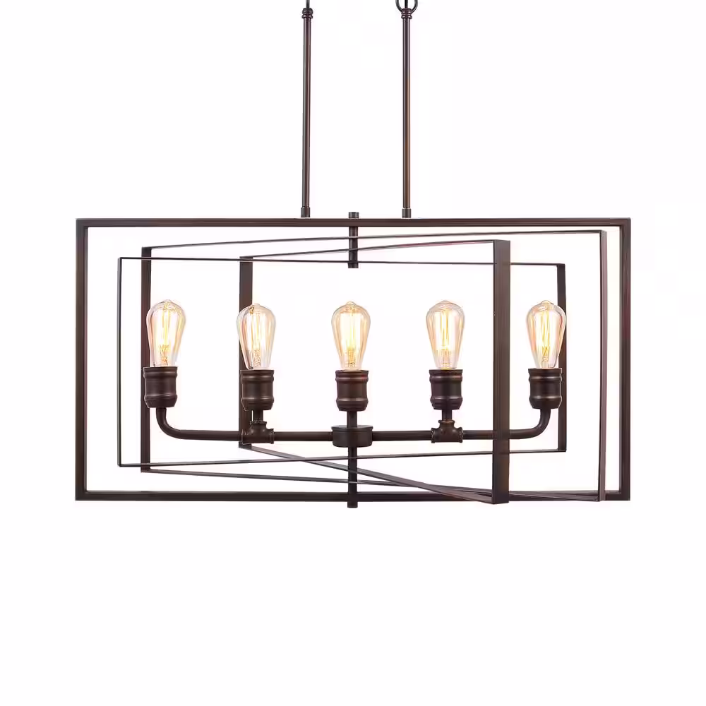 Maxax Madison 5 -Light Kitchen Island Rectangle Chandelier with Wrought Iron Accents