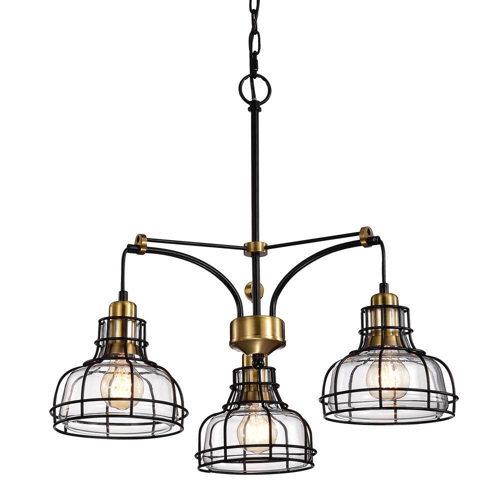 Edvivi Paris 3-Light Black and Antique Gold Industrial Chandelier with Black Cage and Clear Glass Shade