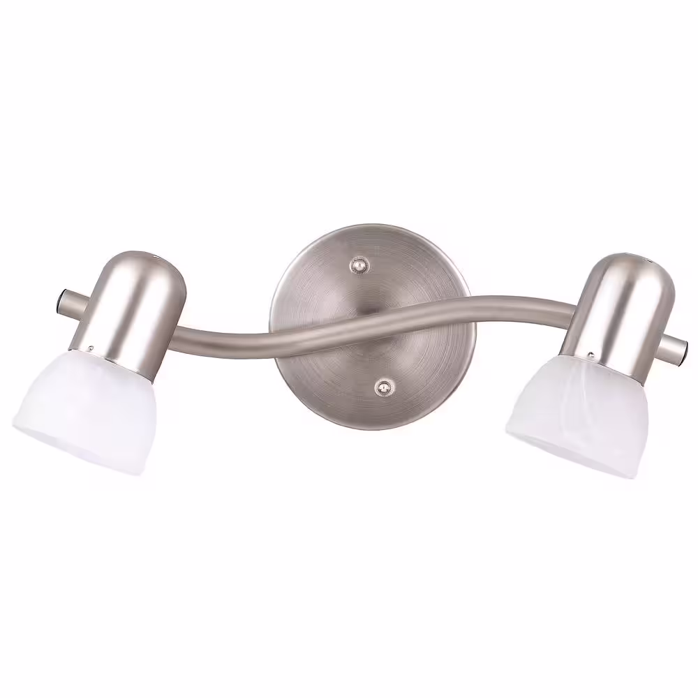None Jasper 15 in. 2-Light Brushed Pewter Track Lighting Fixture with Alabaster Glass Shades