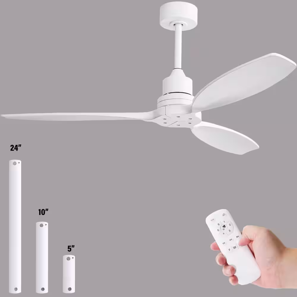 Sofucor 52 in. Indoor/Outdoor White Ceiling Fan with Remote Control and 6 Speed Reversible DC Motor