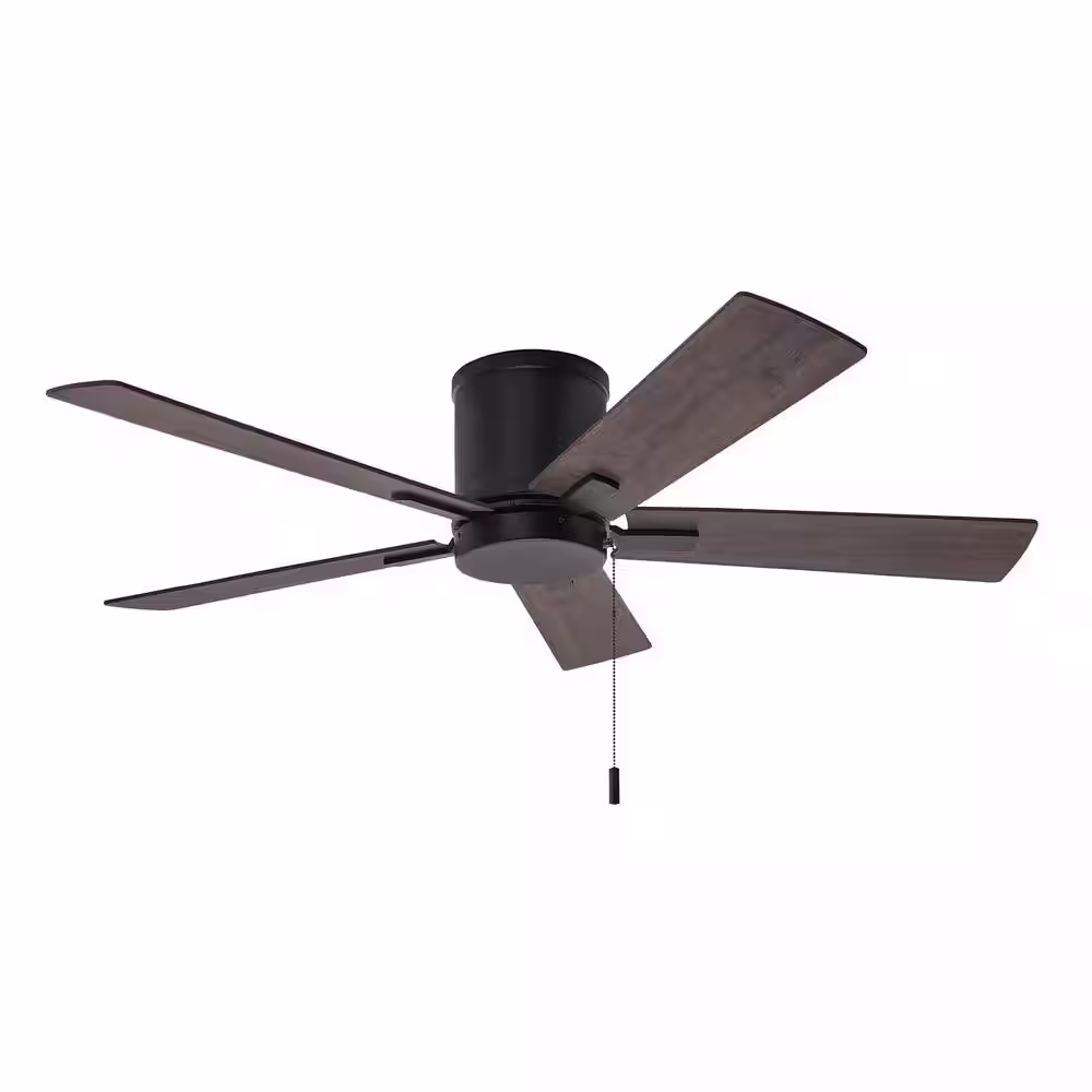 Hampton Bay Grantway 48 in. Indoor/Covered Outdoor Matte Black Hugger Ceiling Fan with Pull Chains Included
