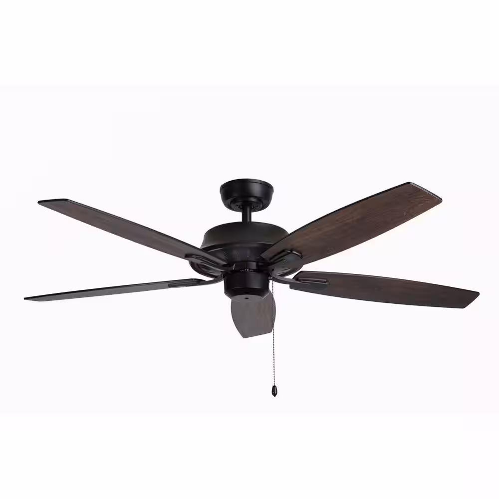BLUE MOUNTAIN FANS Vasil 52 in. 3-Speed Ceiling Fan Matte Black Pull Chain Light Kit, Remote Control or Wall Control Adaptable