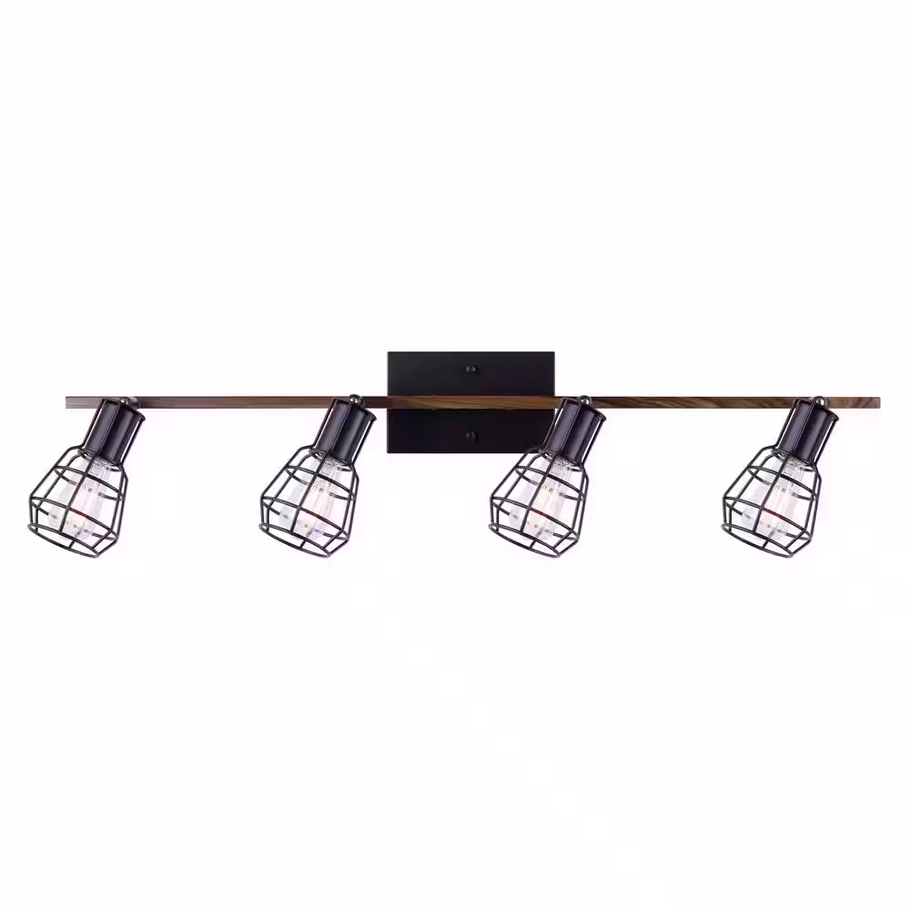 CANARM Toma 2.8 ft. 4-Light Matte Black and Faux Wood Incandescent or LED Track Lighting Kit
