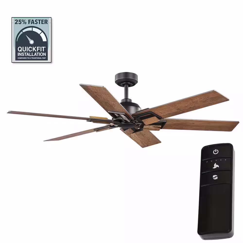 Home Decorators Collection 60 in. Winderige Indoor Matte Black Ceiling Fan with Remote Control and Downrod Included