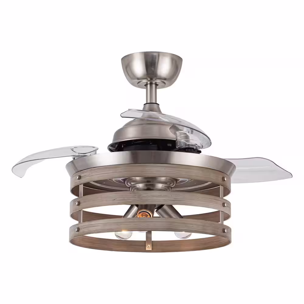 Parrot Uncle Caselli 36 in. Satin Nickel Retractable Ceiling Fan with Light Kit and Remote Control