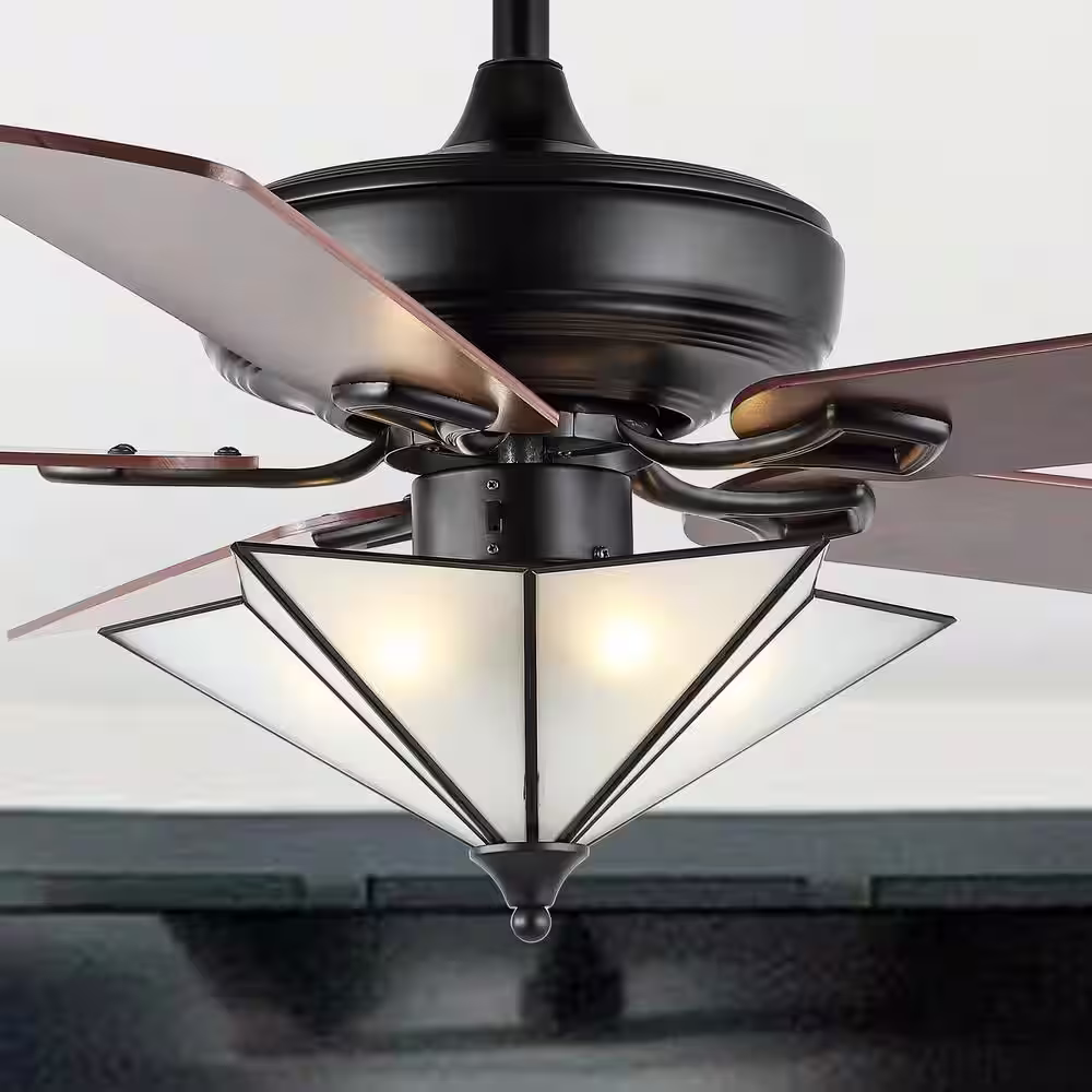 JONATHAN Y Moravia 52 in. 5-Light Black Farmhouse Rustic Iron Star Shade LED Ceiling Fan with Remote
