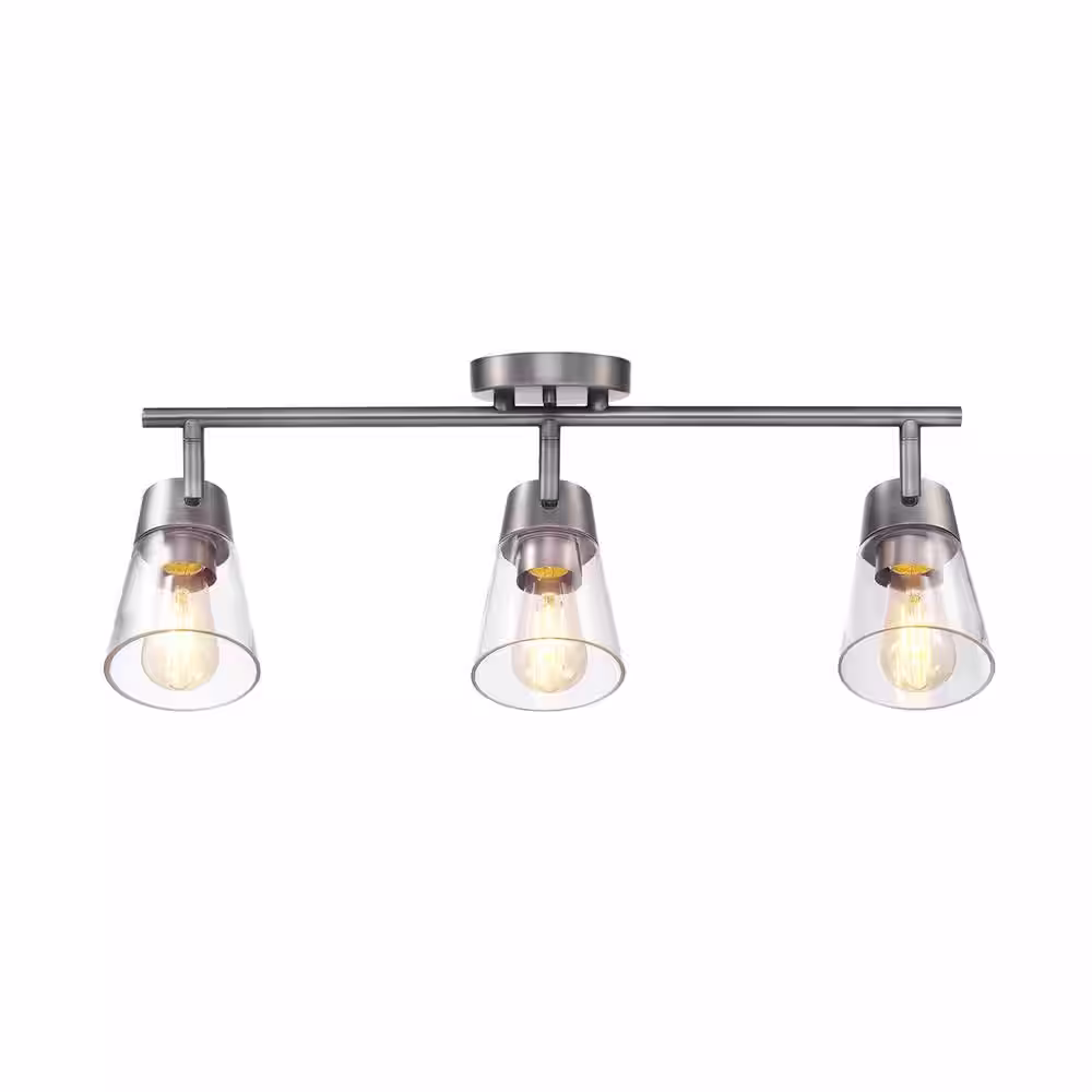 Globe Electric 2 ft. Contemporary Gray Pewter Indoor Hard Wired Track Lighting Kit with Clear Glass Shades, Step Heads