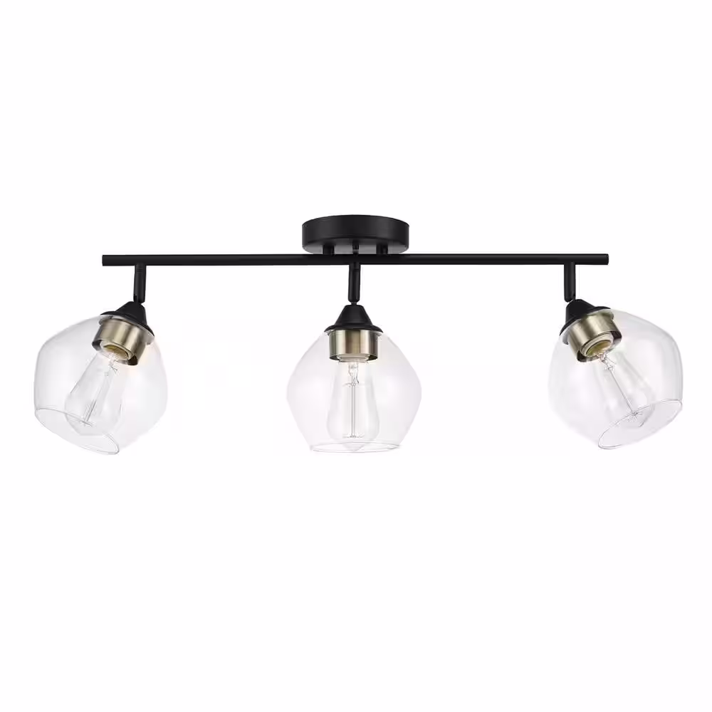 Globe Electric Harrow 2.07 ft. 3-Lights Matte Black Fixed Track Lighting Kit with Brass Accents and Clear Glass Shades, Bulbs Included