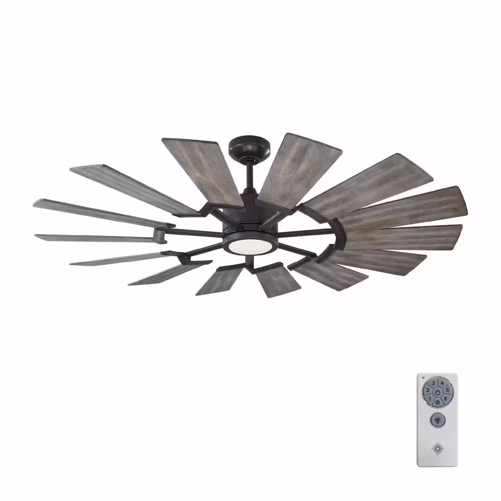 Generation Lighting Prairie 52 in. LED Indoor/Outdoor Aged Pewter Ceiling Fan with Light Kit, Light Grey Weathered Oak Blades and Remote