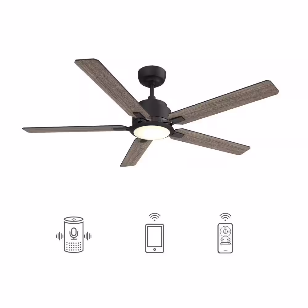 None 52 Inch Dimmable LED Indoor 6 Speed Black+Wood color Reversible DC Motor Smart Ceiling Fan with Remote Control