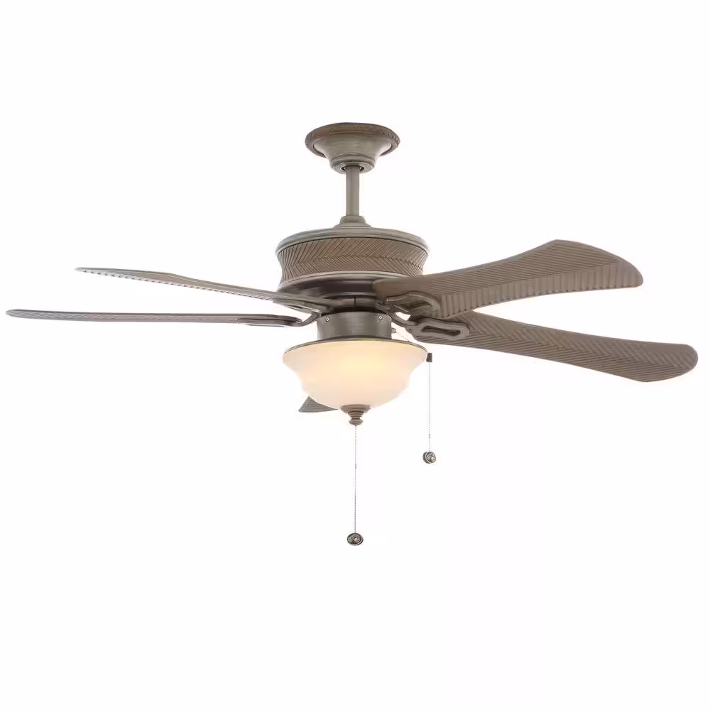 Hampton Bay Algiers 54 in. Indoor/Outdoor Cambridge Silver Ceiling Fan with Light Kit and 5 Weathered Ash-Colored ABS Blades