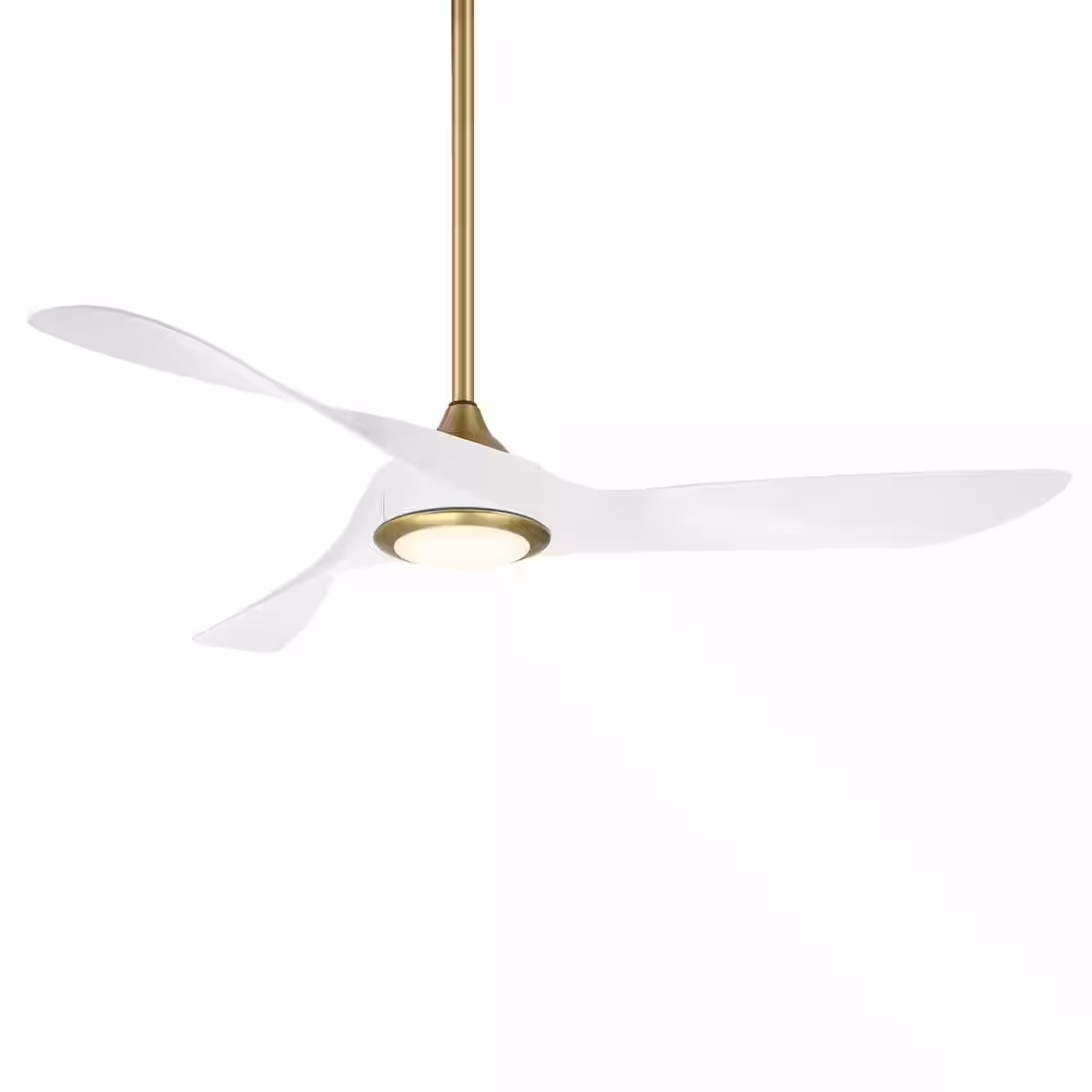 WAC Lighting Swirl 54 in. Integrated LED Indoor/Outdoor 3-Blade Smart Ceiling Fan Soft Brass/Matte White with 3000K & Remote Control