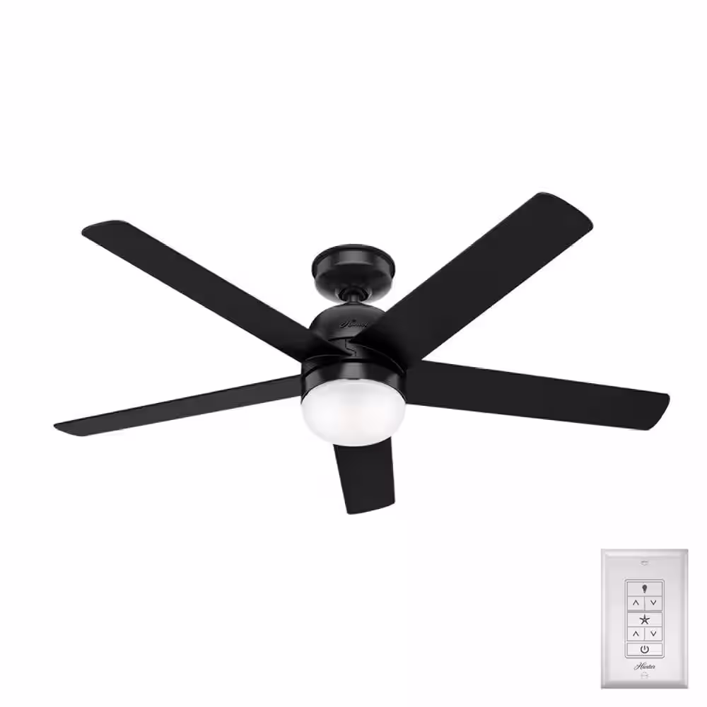 Hunter Anorak 52 in. Outdoor Matte Black Ceiling Fan with Wall Control and Light Kit