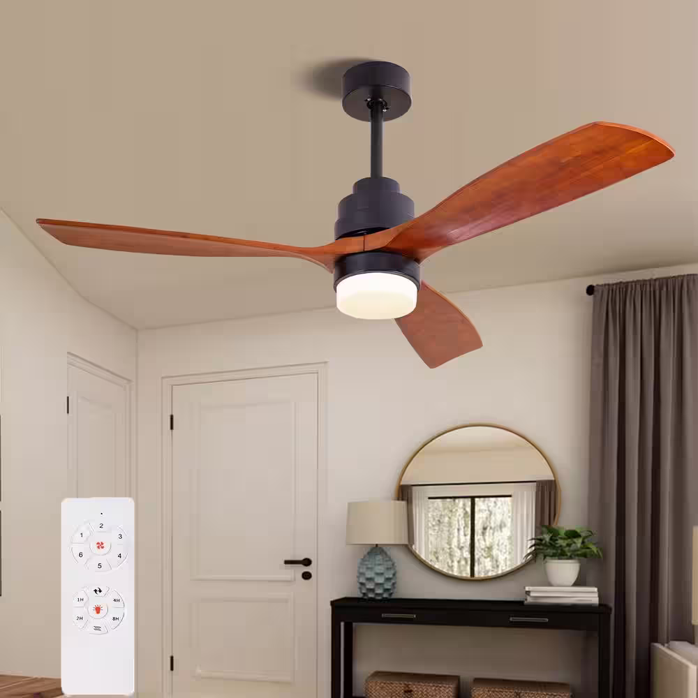 FIRHOT 52 in. Solid Wood Blade Integrated LED Indoor Black Brown Ceiling Fan with Light and Remote Control