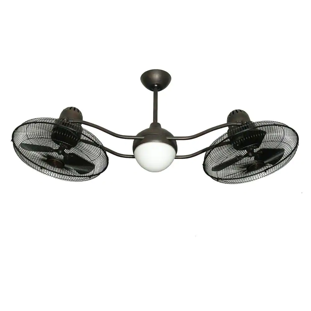 TroposAir Duet 15 in. Rotating Dual Motor Caged Indoor/Outdoor Oil Rubbed Bronze Ceiling Fan with Light with Remote Control