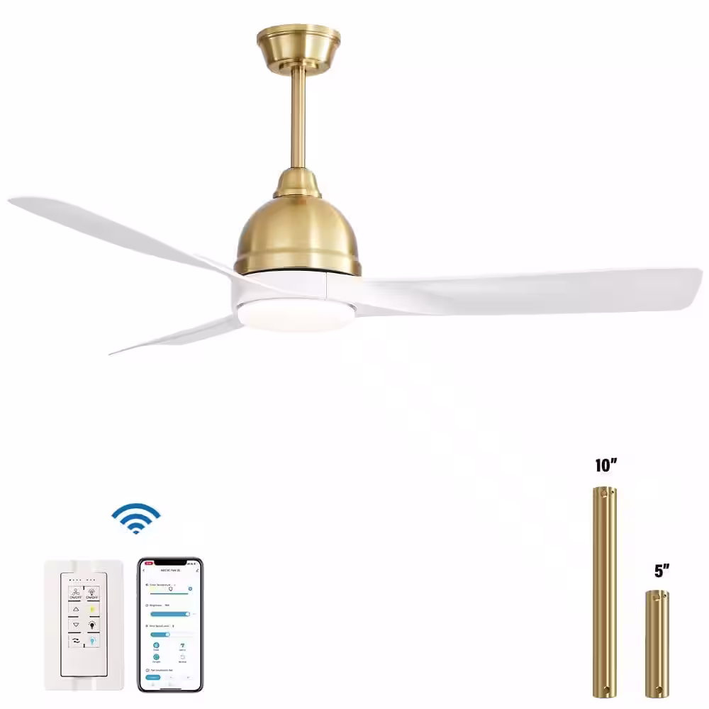 None 54 in. Indoor/Outdoor Gold Smart 6-Speed Ceiling Fan with light and Remote&APP Control