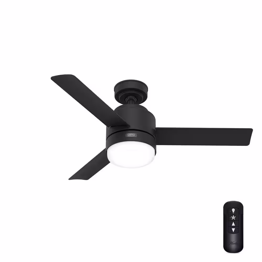 Hunter Gilmour 44 in. Indoor/Outdoor Matte Black Ceiling Fan with Light Kit and Remote Included