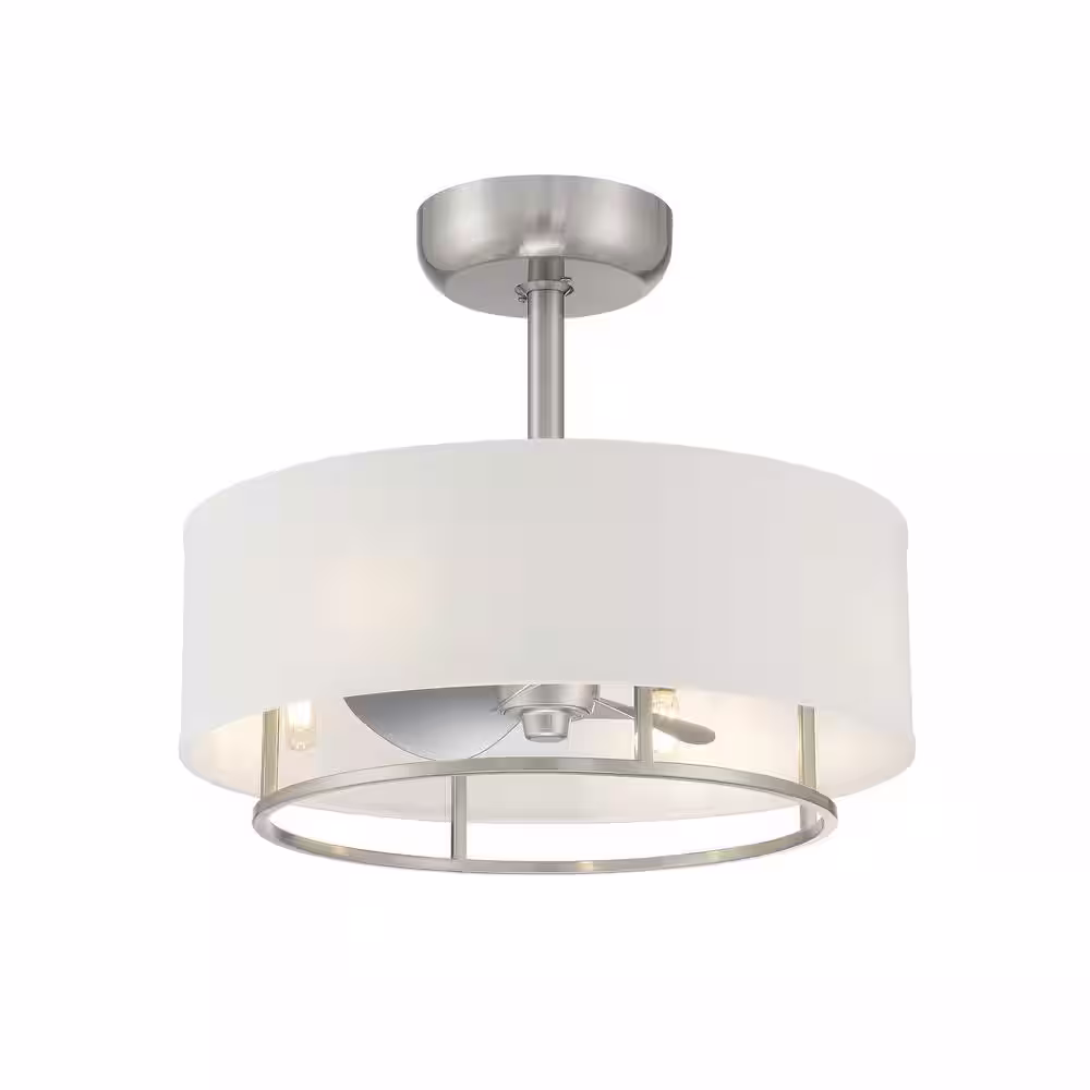 ARRANMORE LIGHTINGÂ &Â FANS Kaiti 20 Inch Indoor/Outdoor Brushed Nickel Drum Shade Ceiling Fan with Dimmable LED Lights and Remote Control