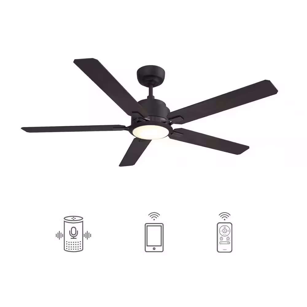 Home Decorators Collection Thelbridge 52 in. Integrated CCT LED Indoor/Outdoor Matte Black Ceiling Fan with Light and Remote Control Included