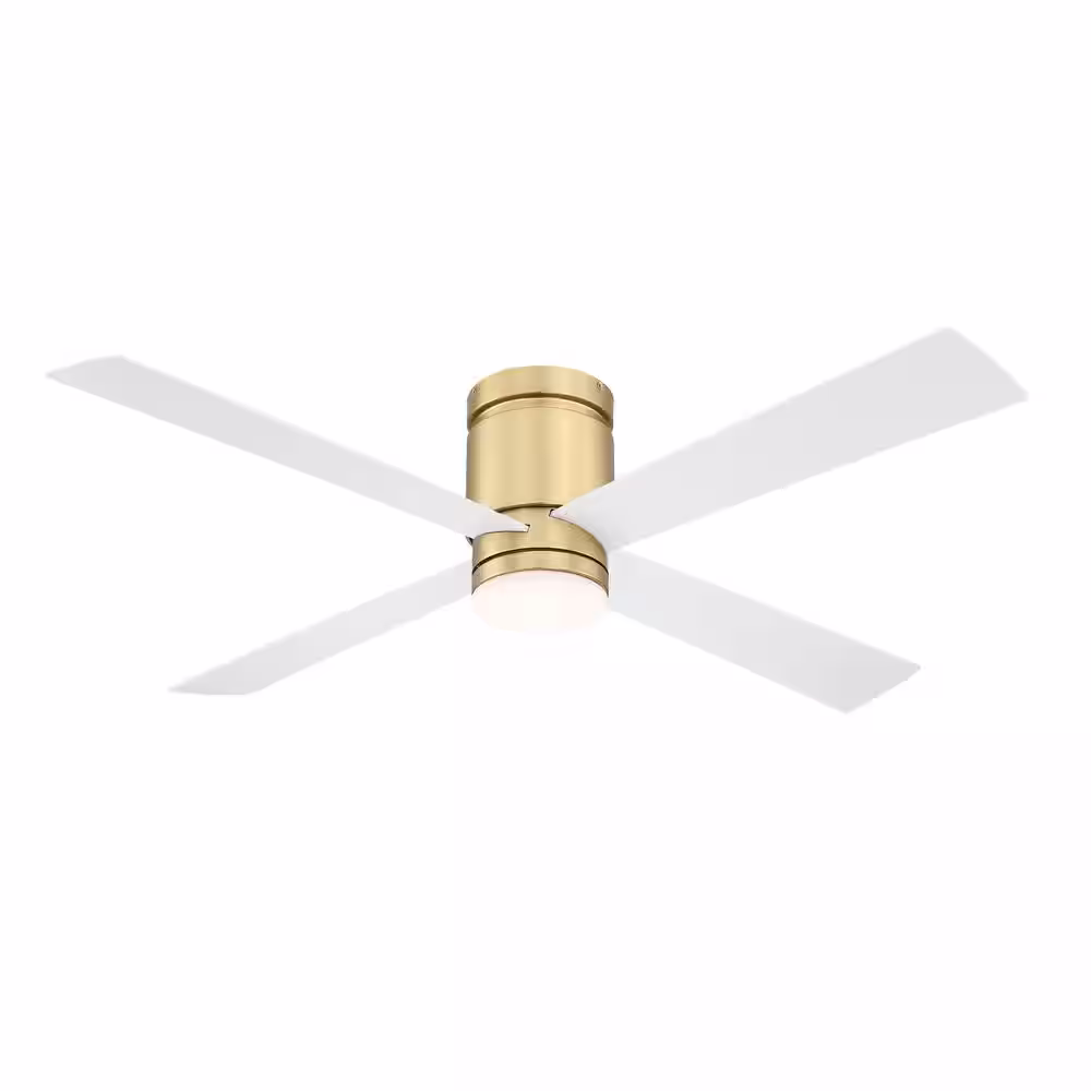 FANIMATION Kwartet 52 in. Indoor/Outdoor Brushed Satin Brass with Matte White Blades Ceiling Fan with Light Kit