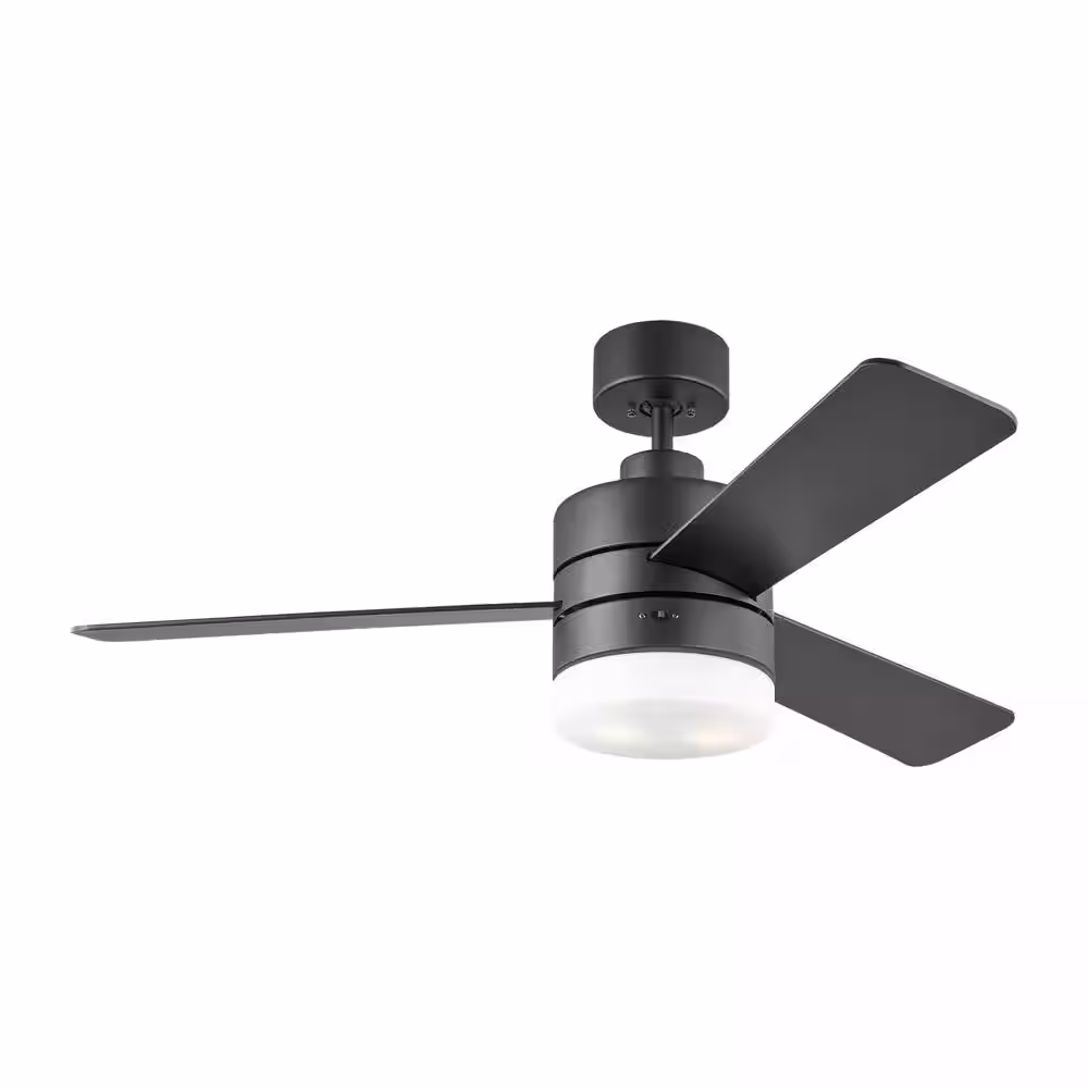 Generation Lighting Era 44 in. Indoor/Outdoor Midnight Black LED Ceiling Fan with Remote Control, Light Kit and Manual Reversible Motor