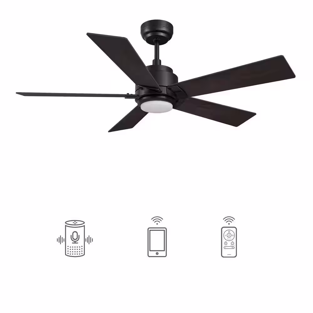 CARRO Everest 52 in. Dimmable LED Indoor/Outdoor Black Smart Ceiling Fan, Light and Remote, Works with Alexa/Google Home/Siri