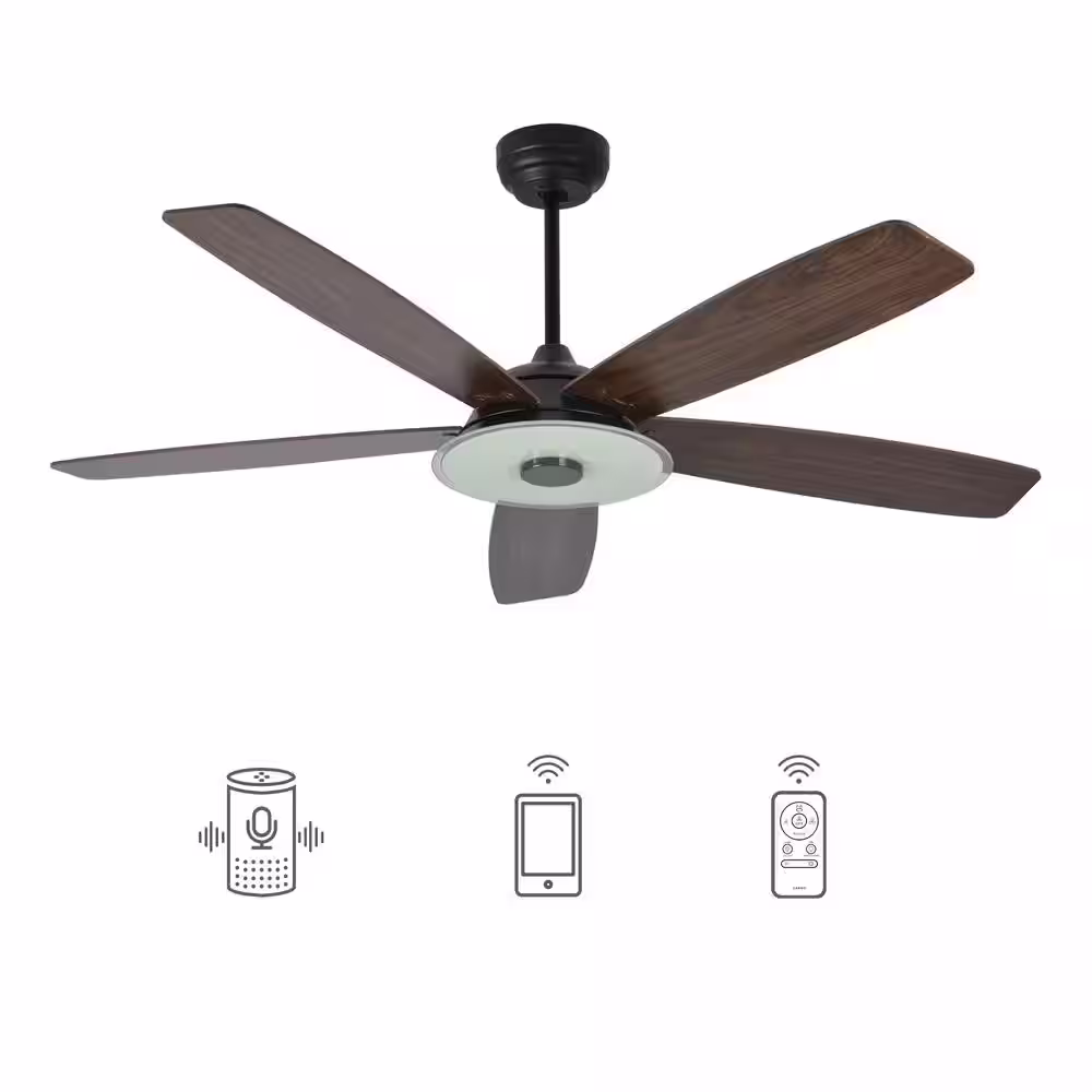 CARRO Exton 52 in. Integrated LED Indoor Black Smart Ceiling Fan with Light Kit and Wall Control, Works with Alexa/Google Home