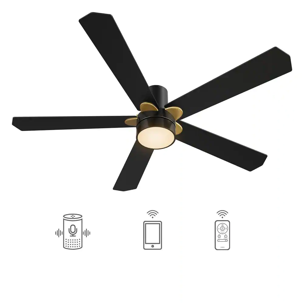 CARRO Aspen 52 in. Dimmable LED Indoor/Outdoor Black Smart Ceiling Fan with Light and Remote, Works with Alexa/Google Home