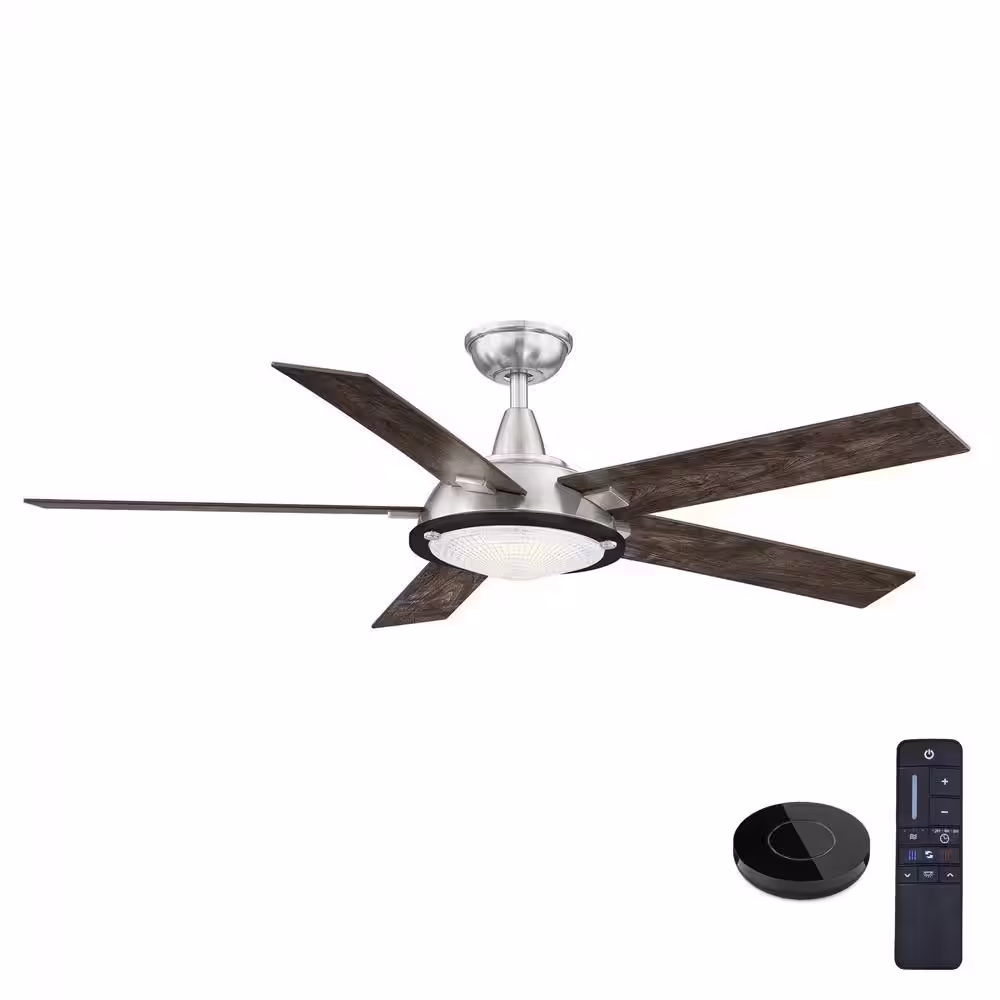 Home Decorators Collection Merienda 56 in. LED Brushed Nickel Ceiling Fan with Light and Remote Control works with Google and Alexa