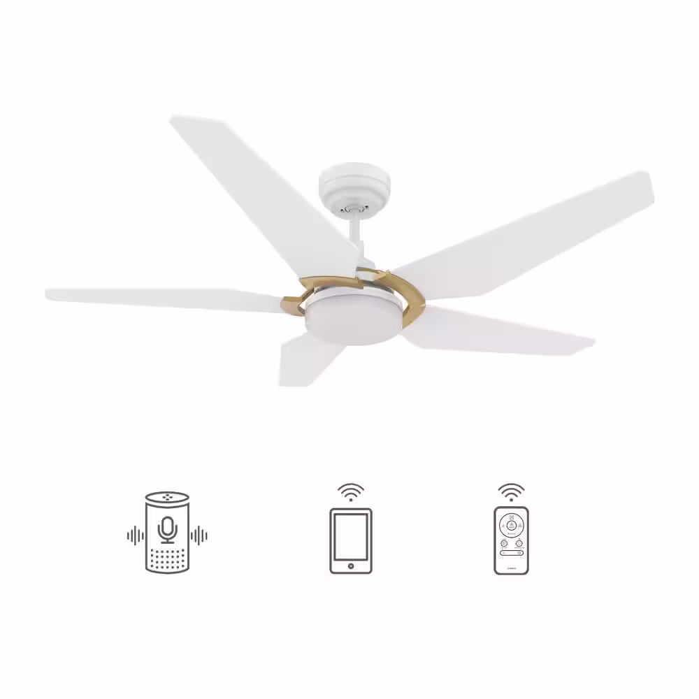 CARRO Voyager 52 in. Dimmable LED Indoor/Outdoor White Smart Ceiling Fan with Light and Remote, Works w/Alexa/Google Home