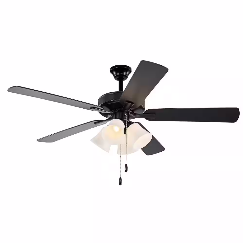 Edvivi 52 in. Indoor Matte Black 5-Blade Farmhouse Reversible Ceiling Fan with Light Kit and Pull Chain