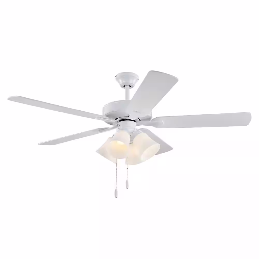 Edvivi 52 in. Indoor White 5-Blade Farmhouse Reversible Ceiling Fan with Light Kit and Pull Chain