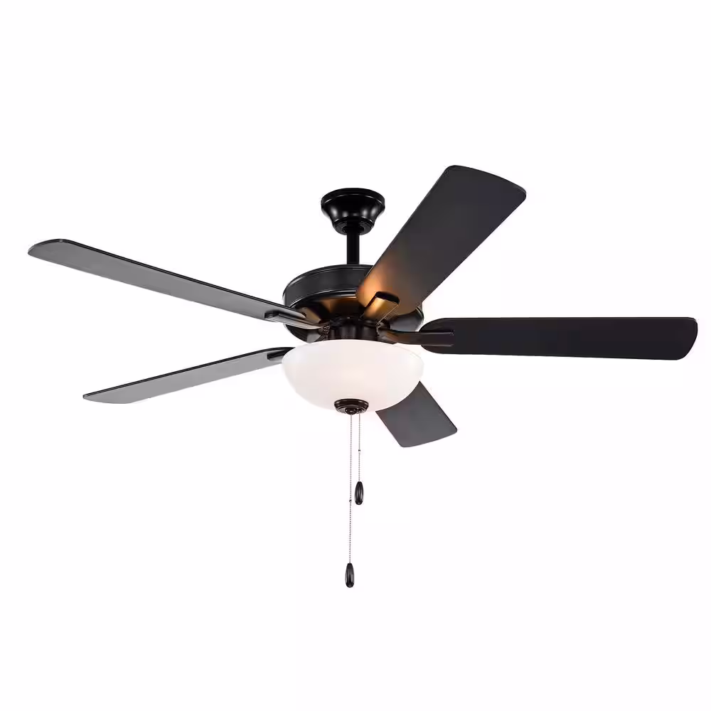 Edvivi 52 in. Indoor Matte Black 5-Blade Reversible Ceiling Fan with Light Kit and Pull Chain