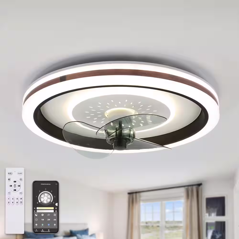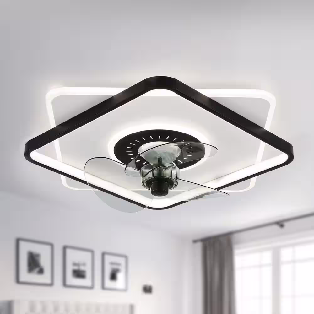 Bella Depot 19 in. Indoor Black Ceiling Fan with Integrated LED Light and Remote Low Profile Ceiling Lighting