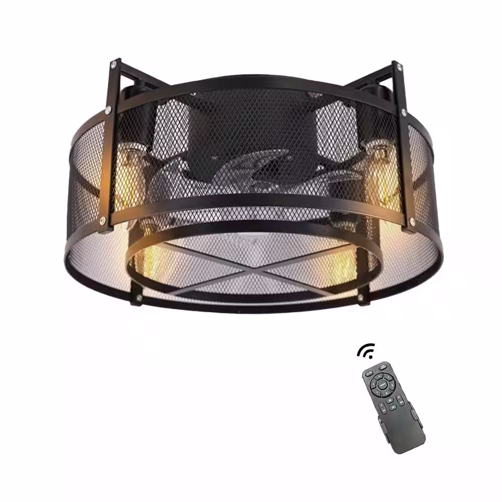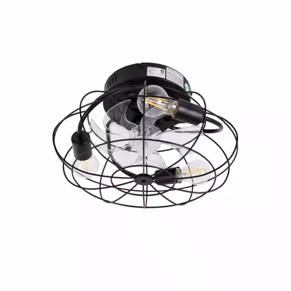 None 16 in. Industrial Style Indoor 4-Light Black Caged Ceiling Fan with Light and Remote Control, Reverse Airflow