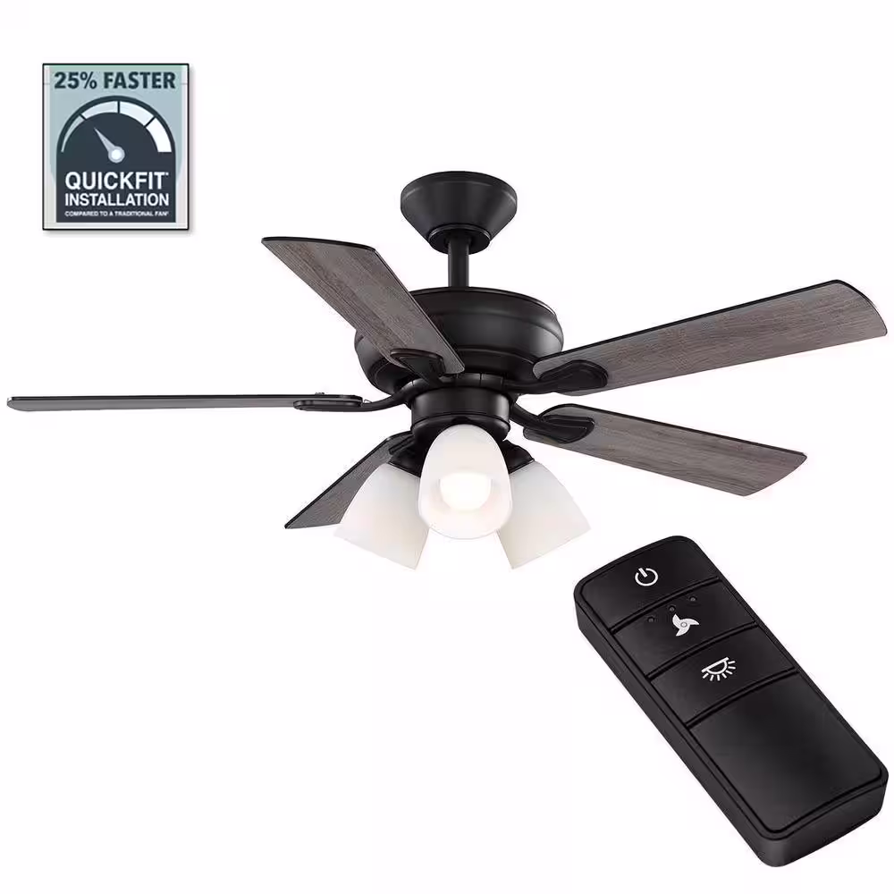 Hampton Bay Riley 44 in. Indoor LED Matte Black Downrod Ceiling Fan with 5 Reversible Blades, Light Kit and Remote Control Included
